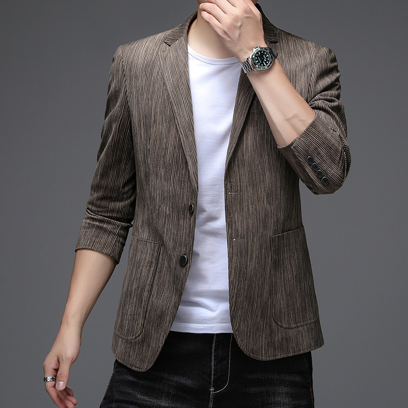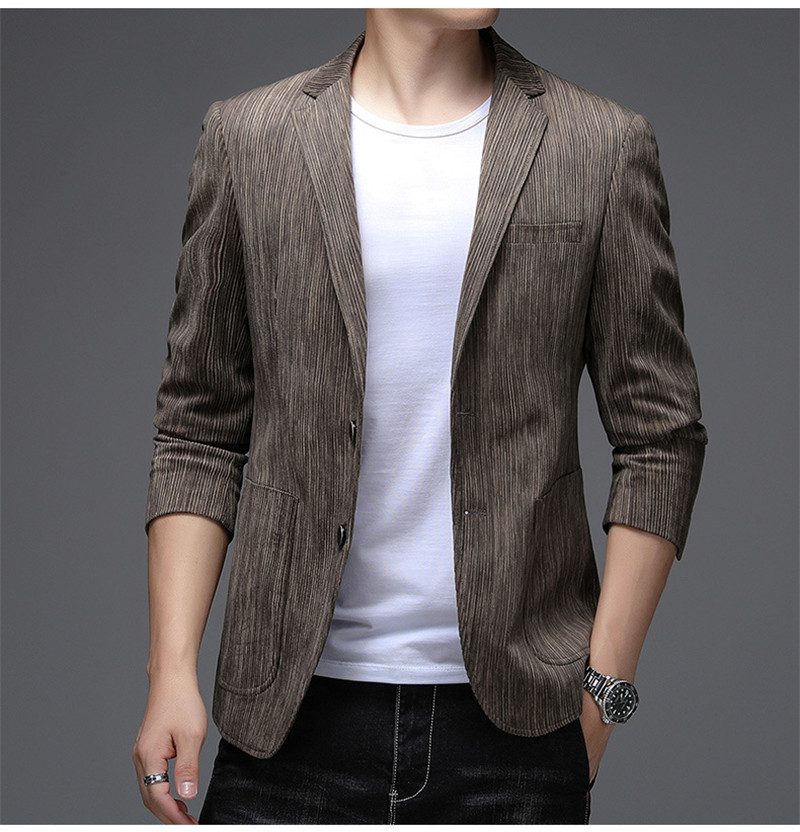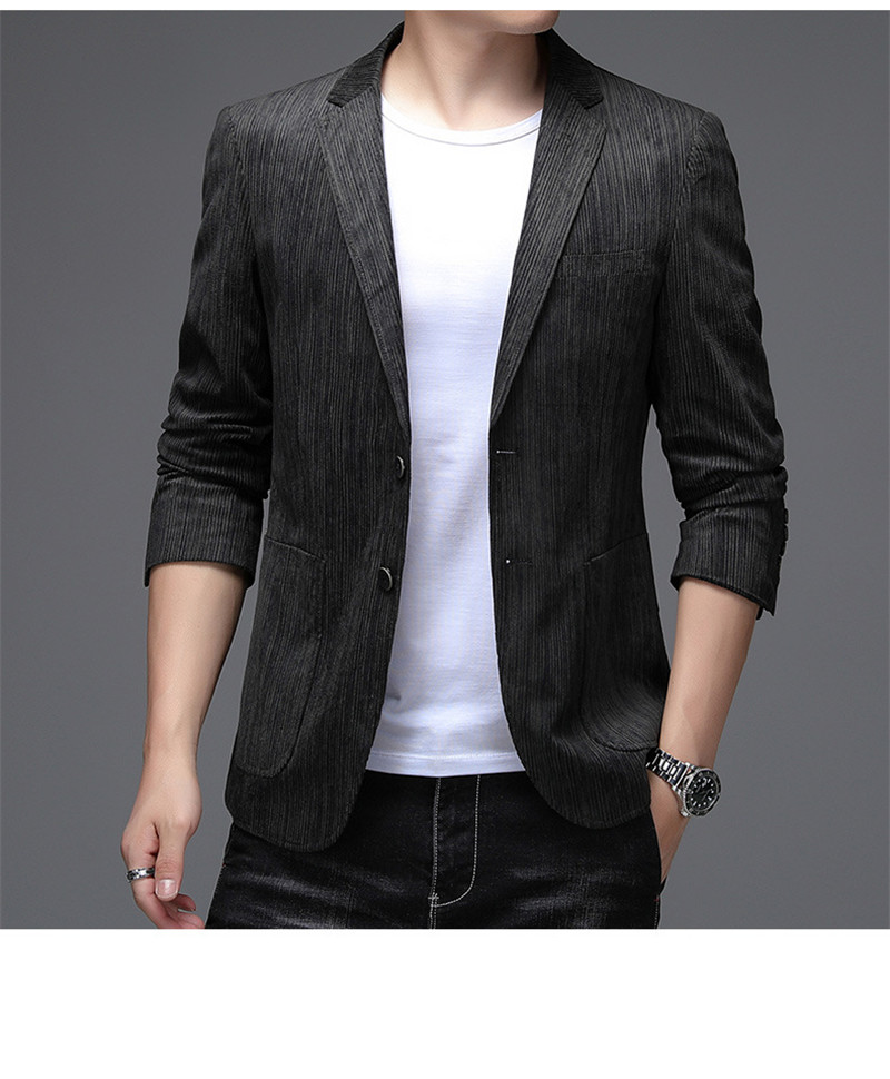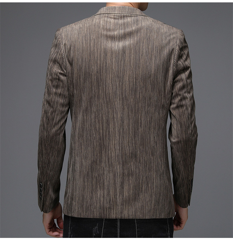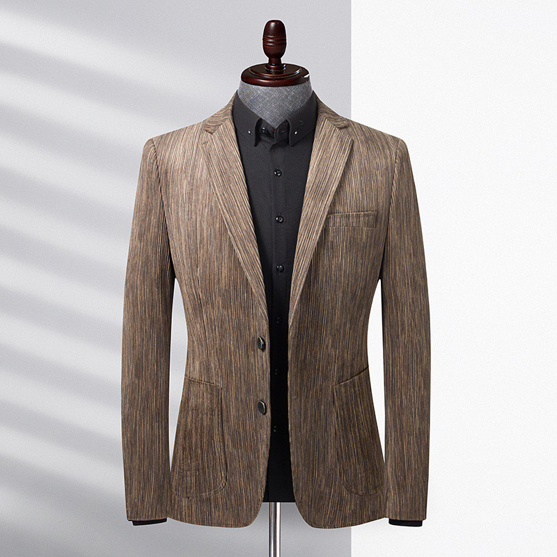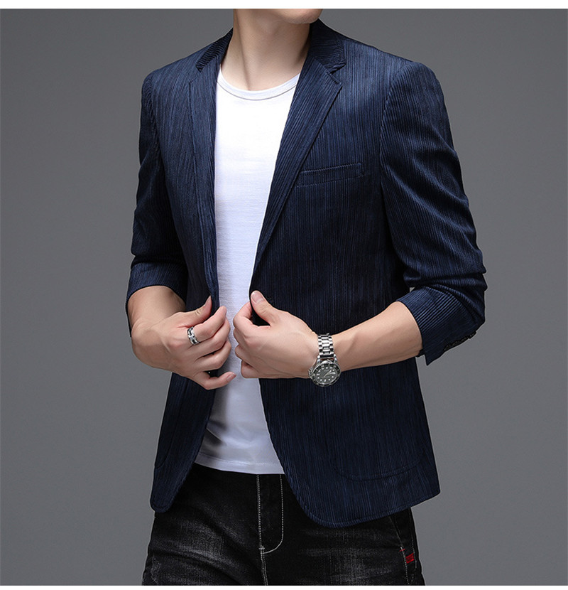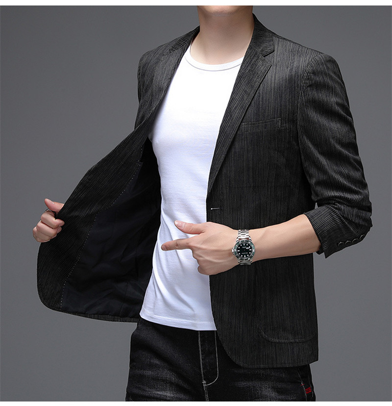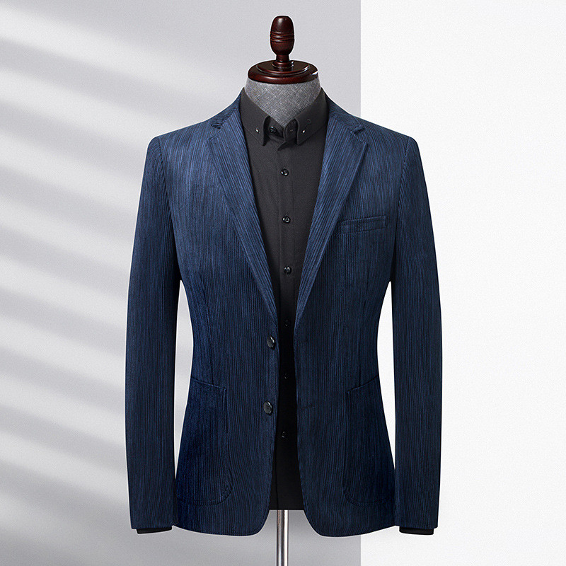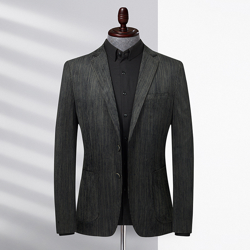 スリムなシルエットで、すっきりした印象を与えるメンズスーツジャケットは、