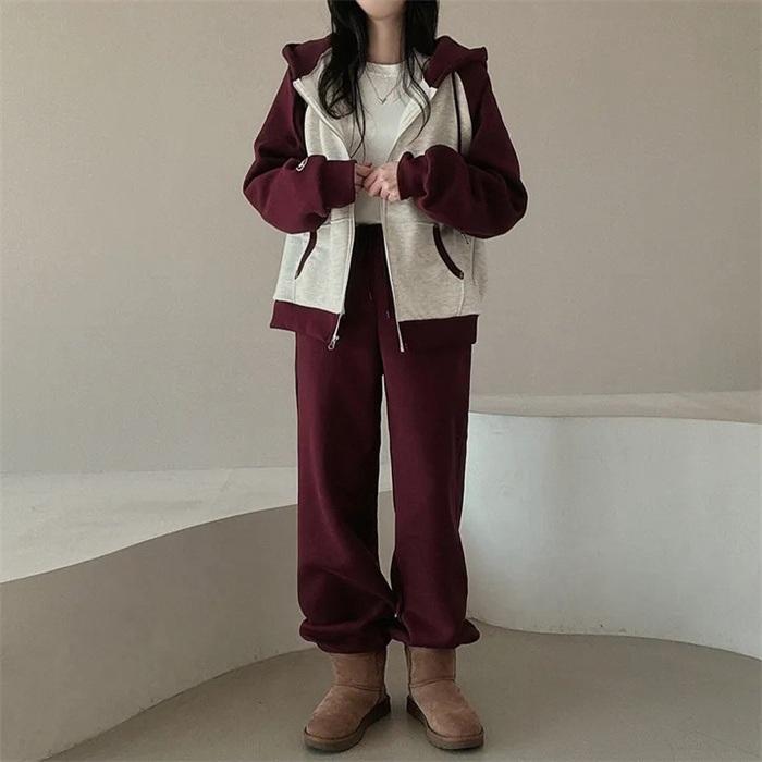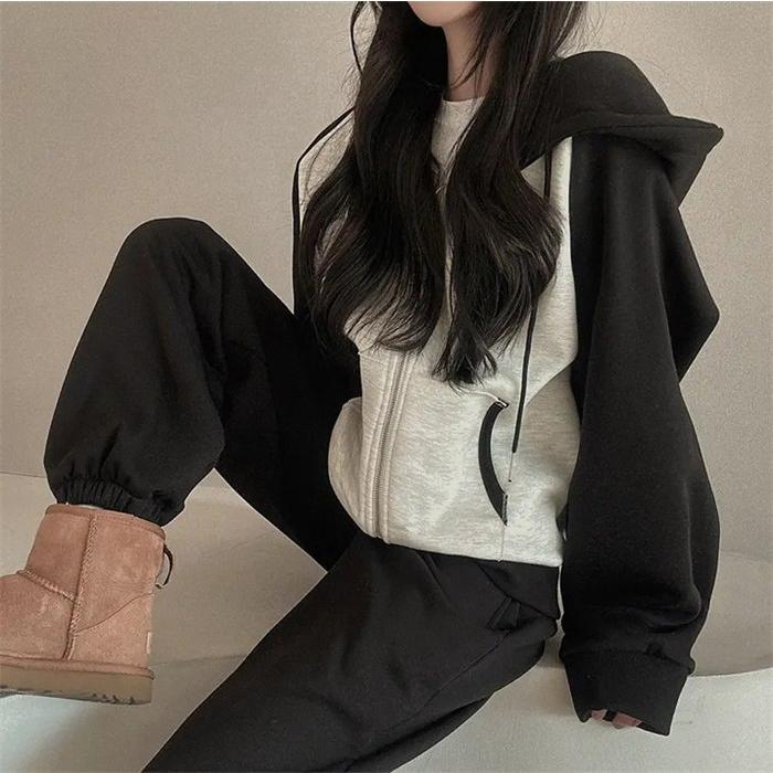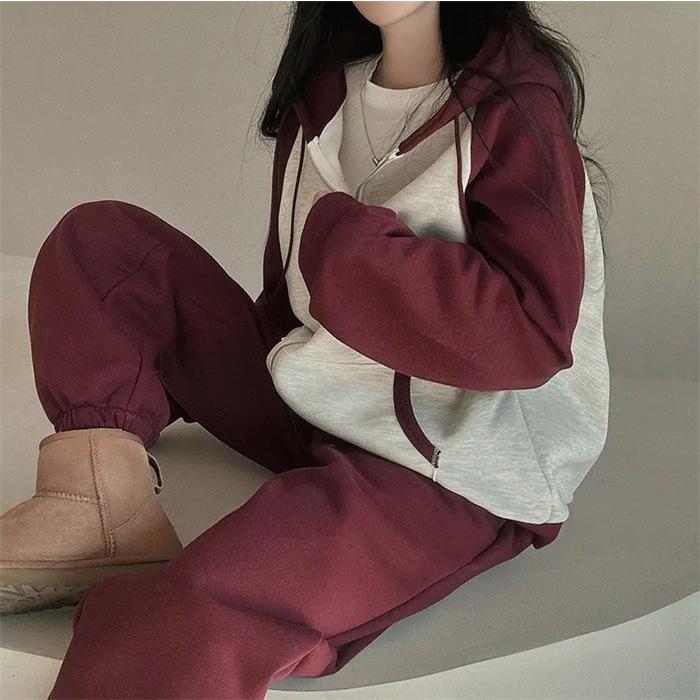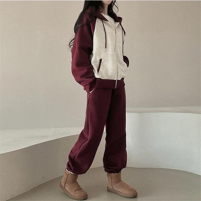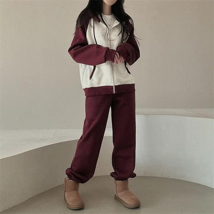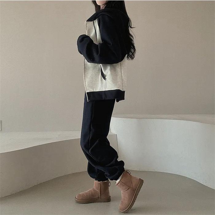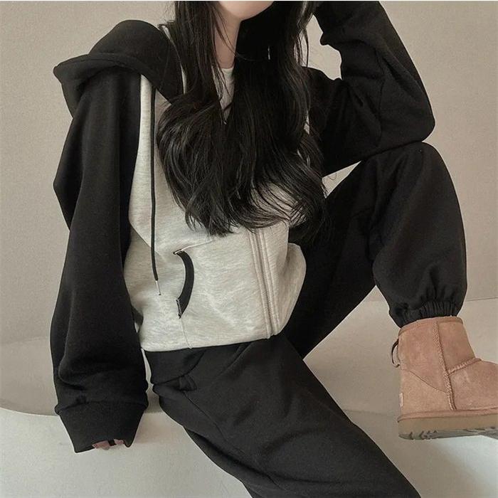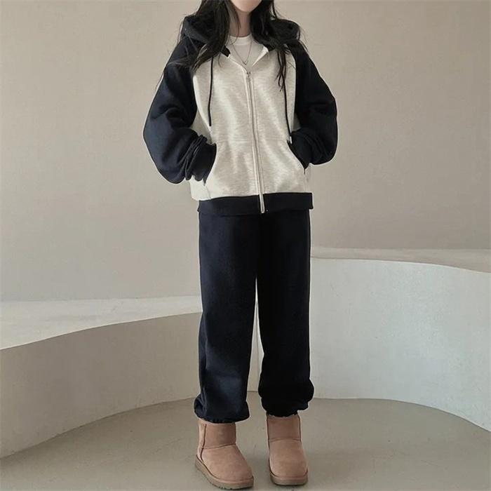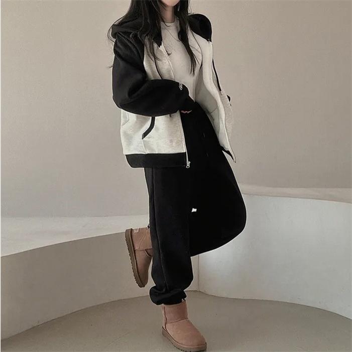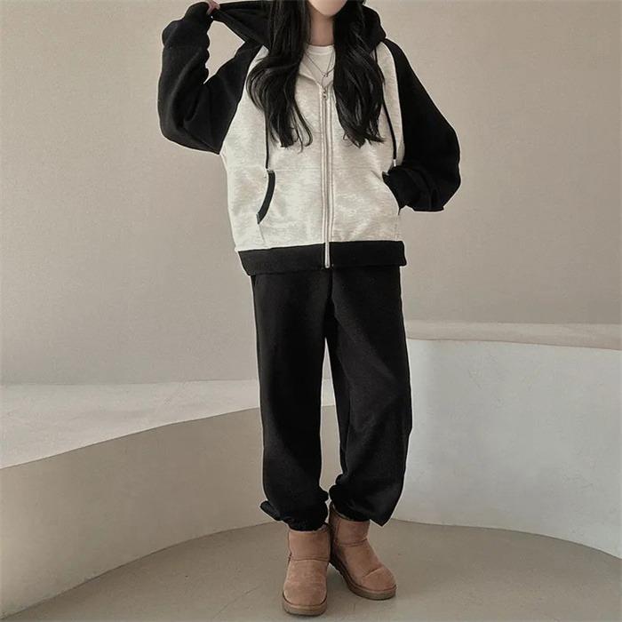 上下セット レディース セットアップ スウェット 切り替え ジップアップ フード付き 長袖 パーカー ジョガーパンツ ロングパンツ 部屋着 普段着 運動着