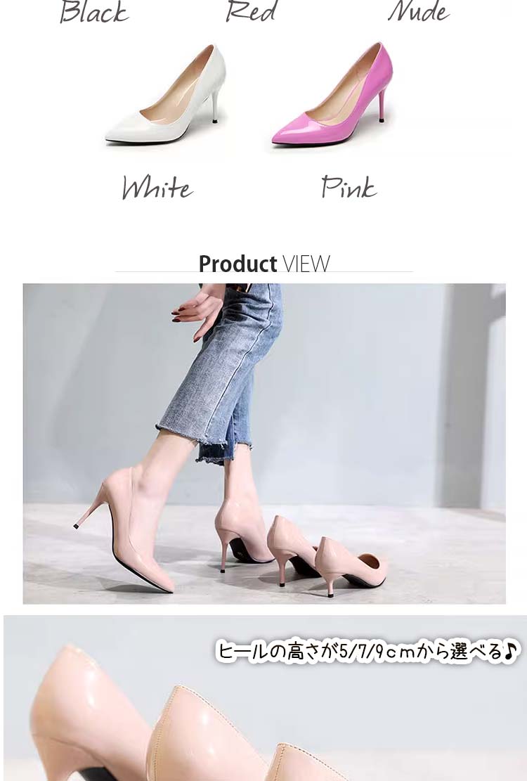 スラッと細く長い足に見せてくれる高さが選べる5CM・7CM・9CMのヒール。