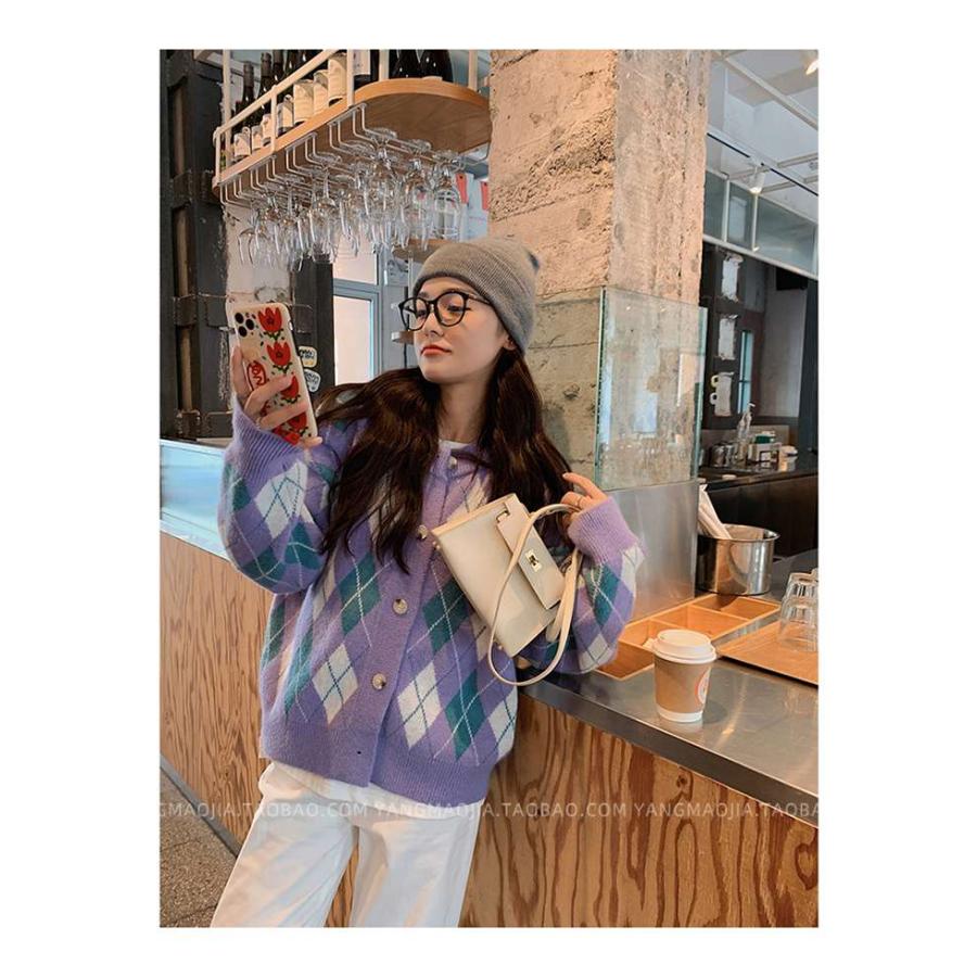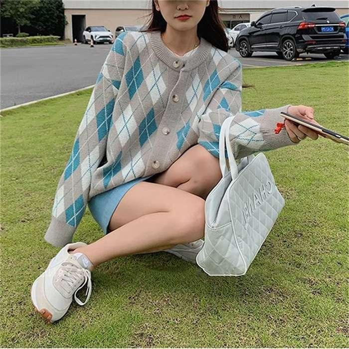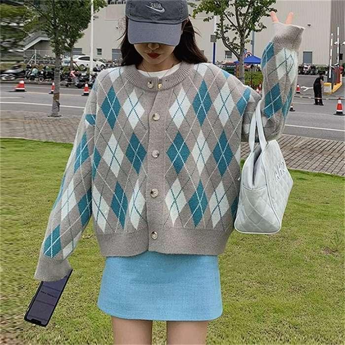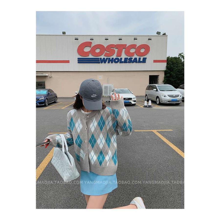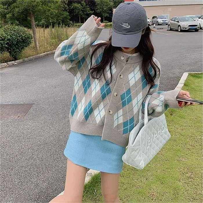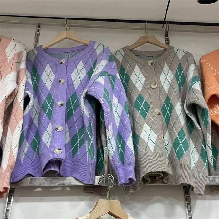 ニットカーディガン レディース カーディガン ニット セーター Vネック チェック柄 ボタン留め トップス 開襟 上着 ライトアウター
