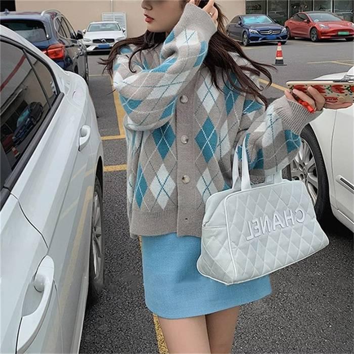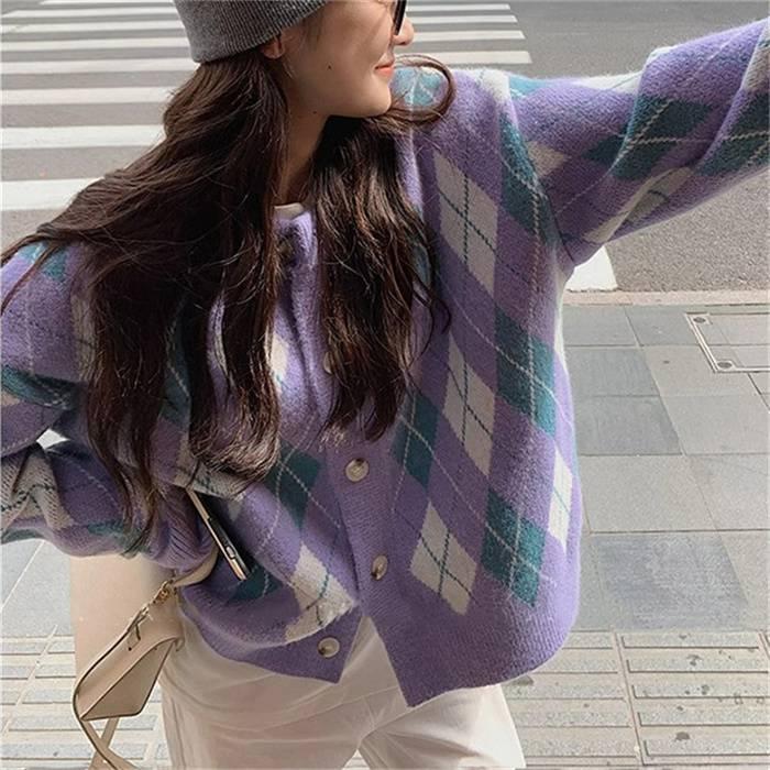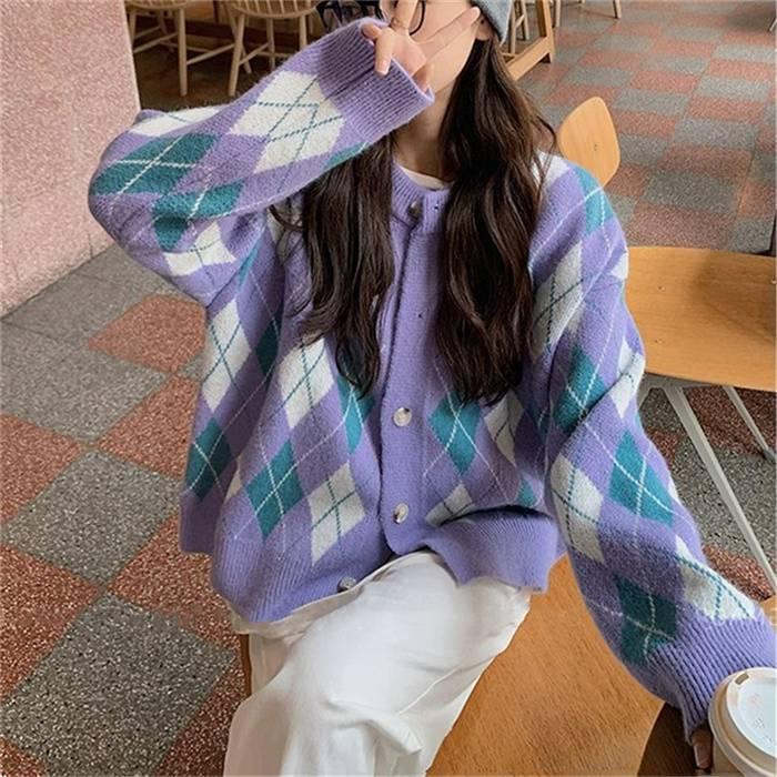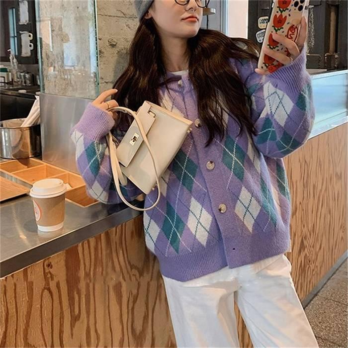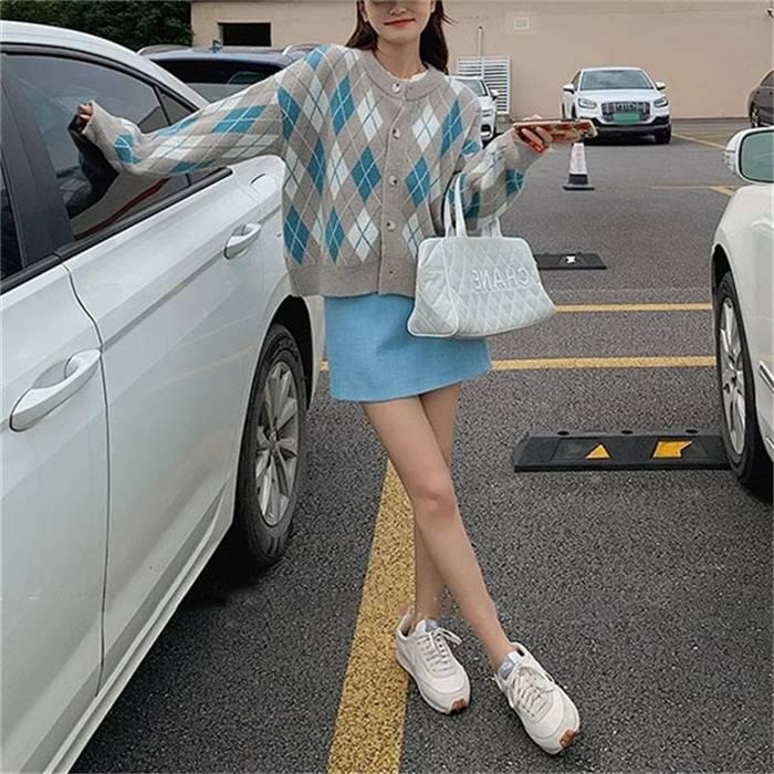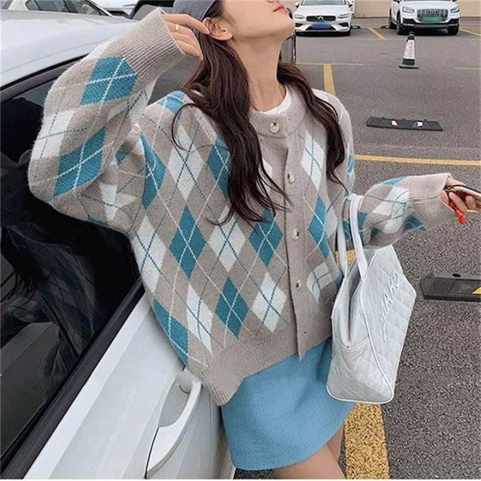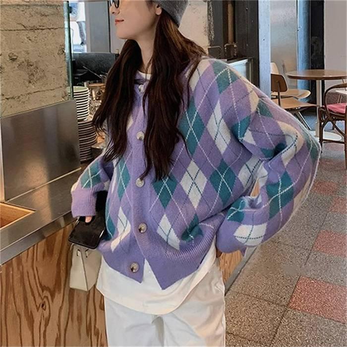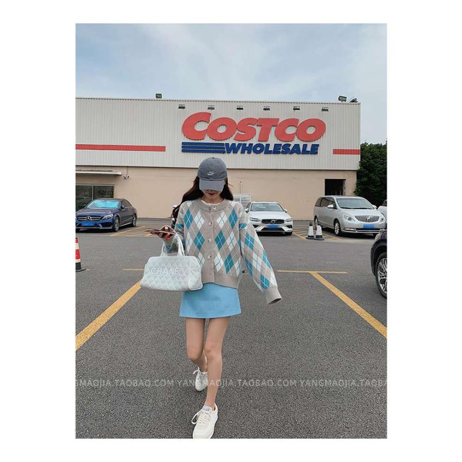 ニットカーディガン レディース カーディガン ニット セーター Vネック チェック柄 ボタン留め トップス 開襟 上着 ライトアウター