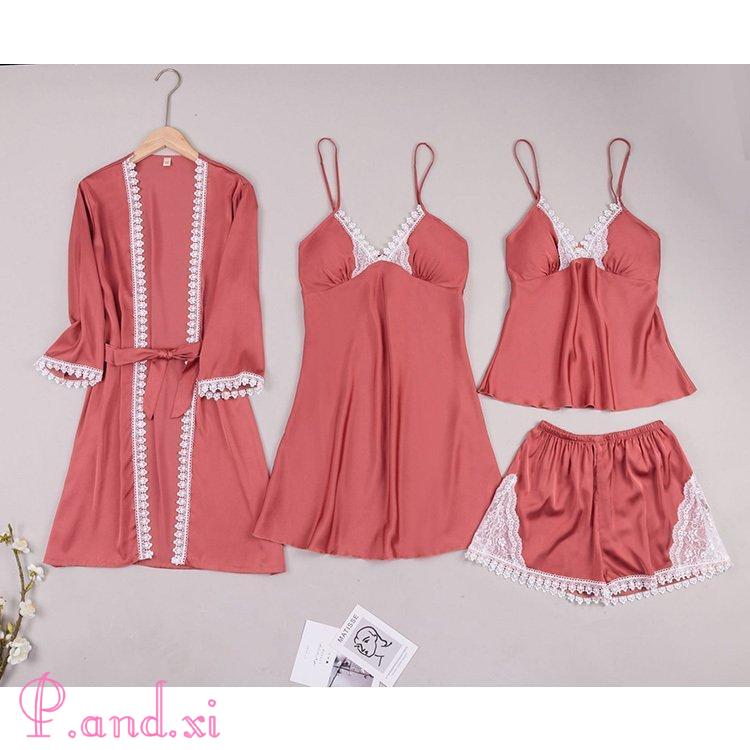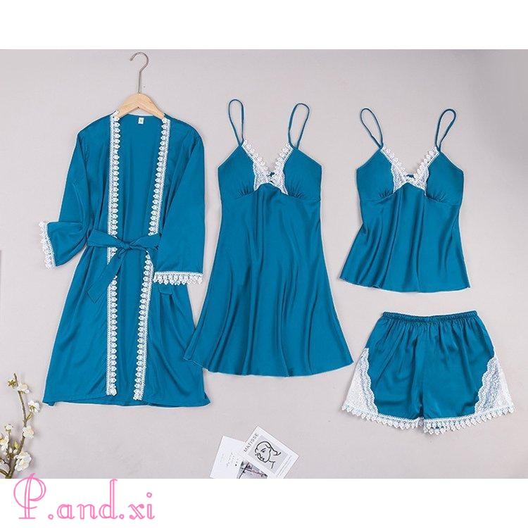 ■商品名 パジャマ ルームウェア レディース 春夏 4点セットアップ ネグリジェ 綿 ルームウェア 大きいサイズ ランジェリー 可愛い パジャマ 女性 部屋着 寝間着 韓国風
