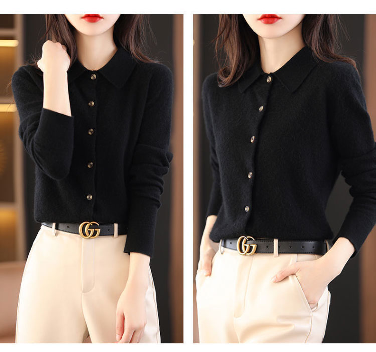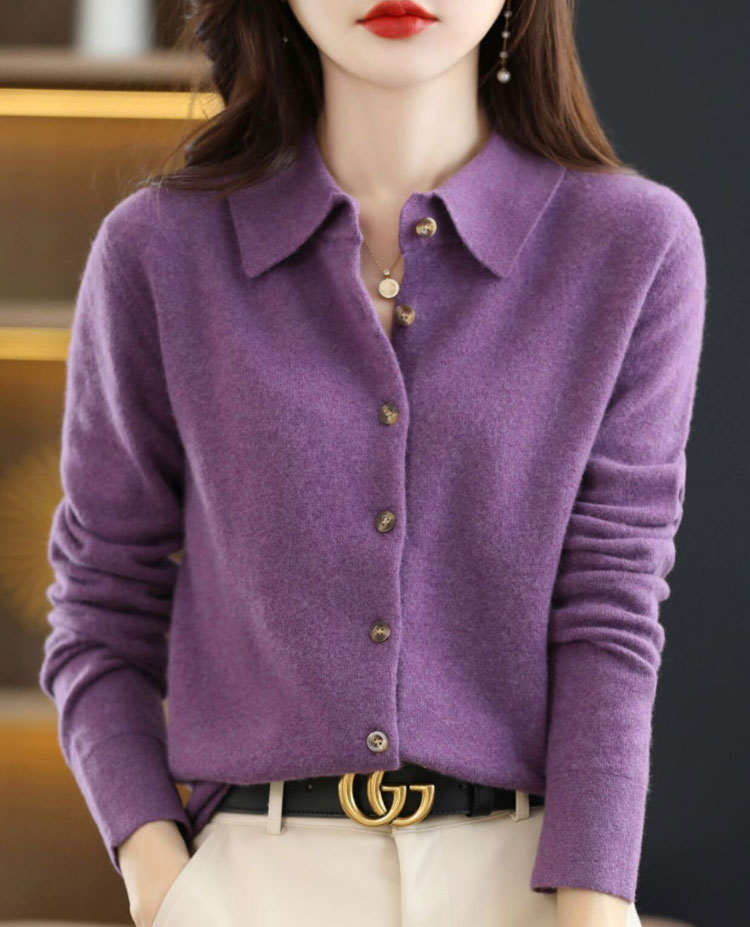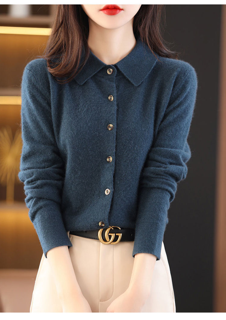 襟付き ニット カーディガン レディース 秋冬 ポロ襟 トップス アウター 羽織り セーター ゆったり カシミヤ 体型カバー きれいめ あったか 可愛い 韓国ファッション