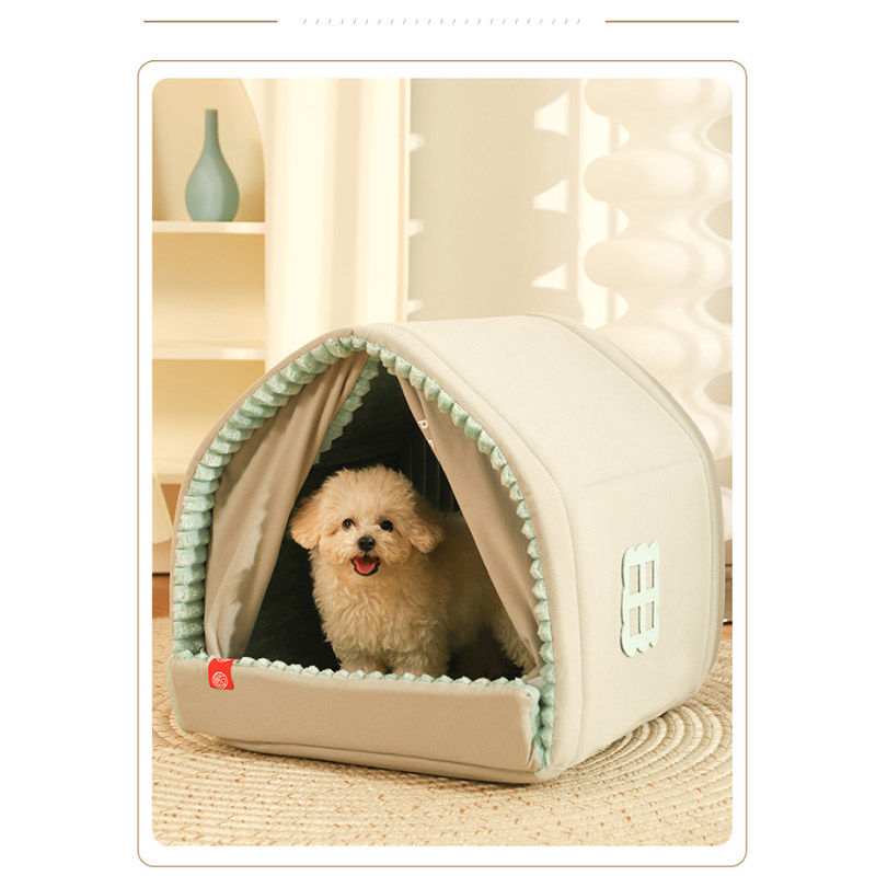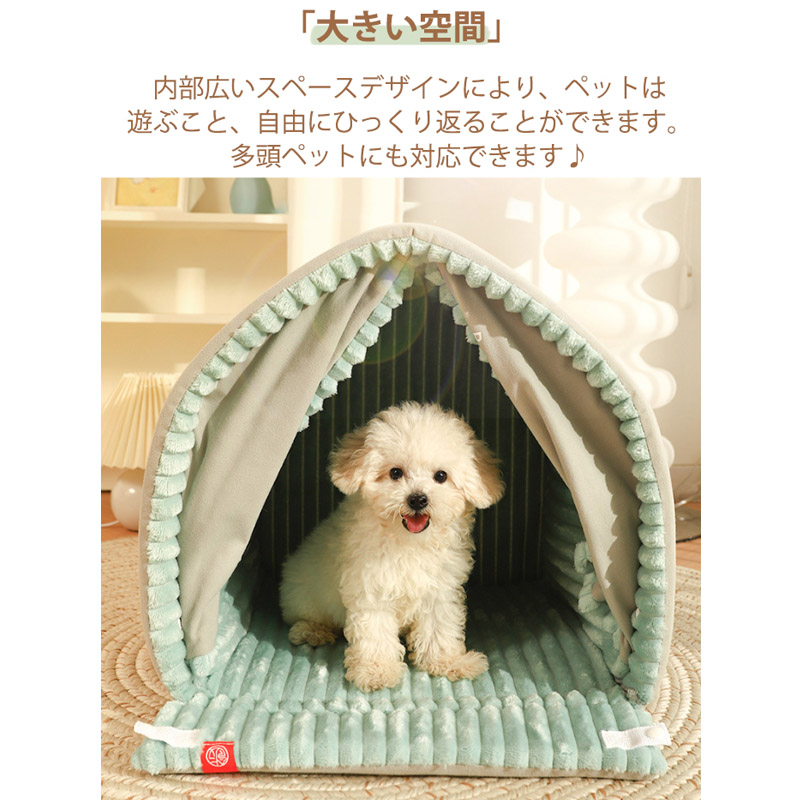 二つのカーテン付きのデザインで、全面的に防風防寒 できます。カーテンを使用時は全密閉で、ペットに安 心感いっぱいあげます。暖かい冬を過ごせましょう