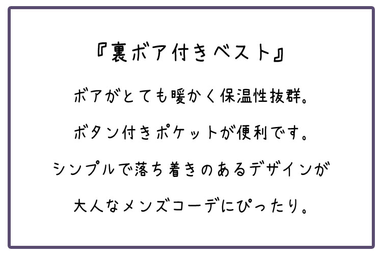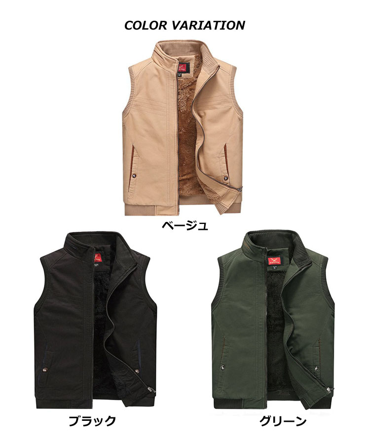 ベスト メンズ 冬 ボア ファスナー ポケット キレイめ アウター シニアアウトドア シンプル 全3色 大きいサイズ 無地