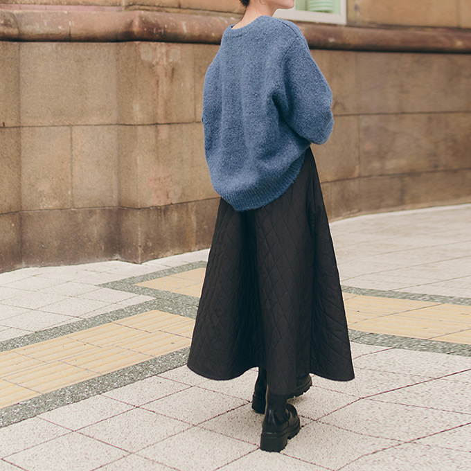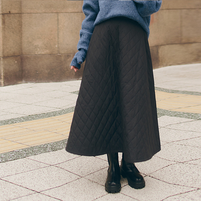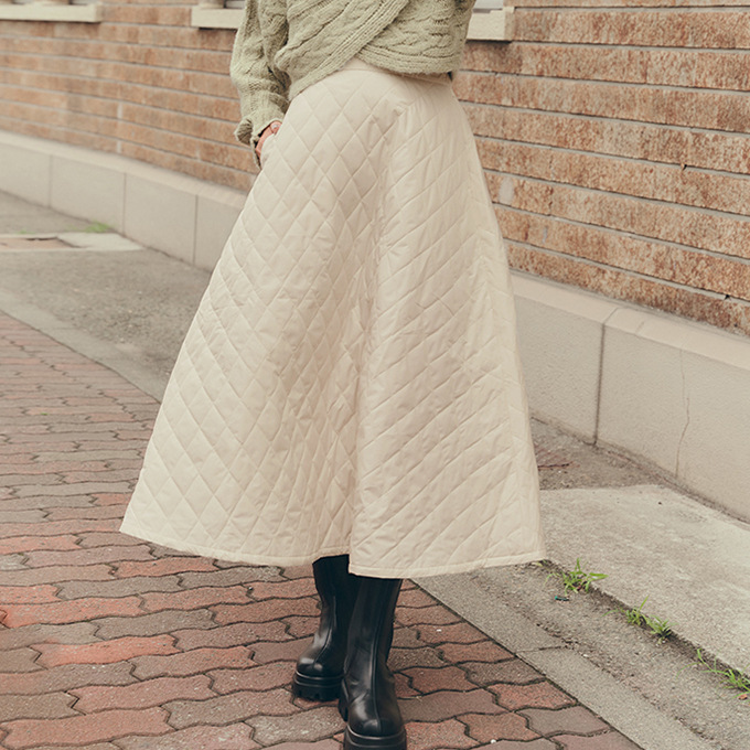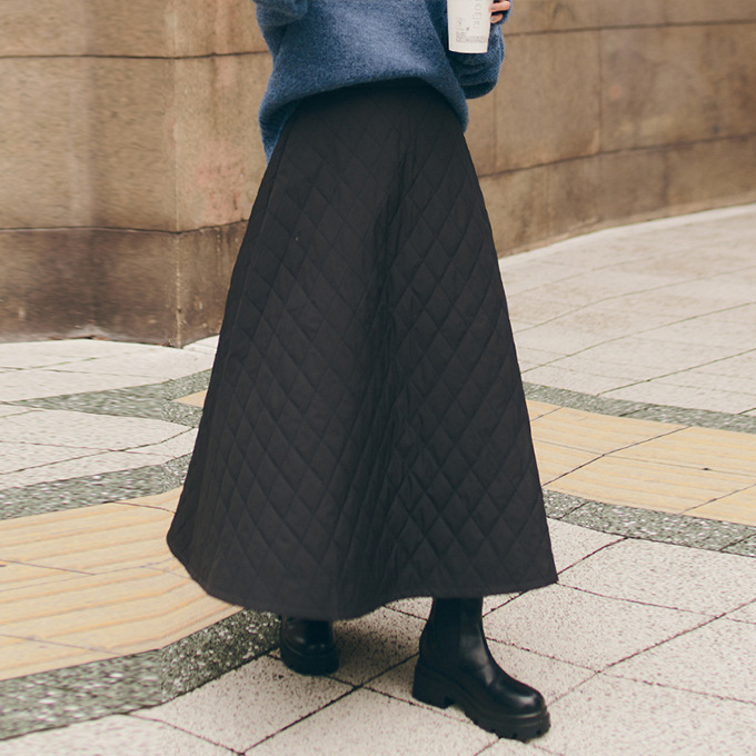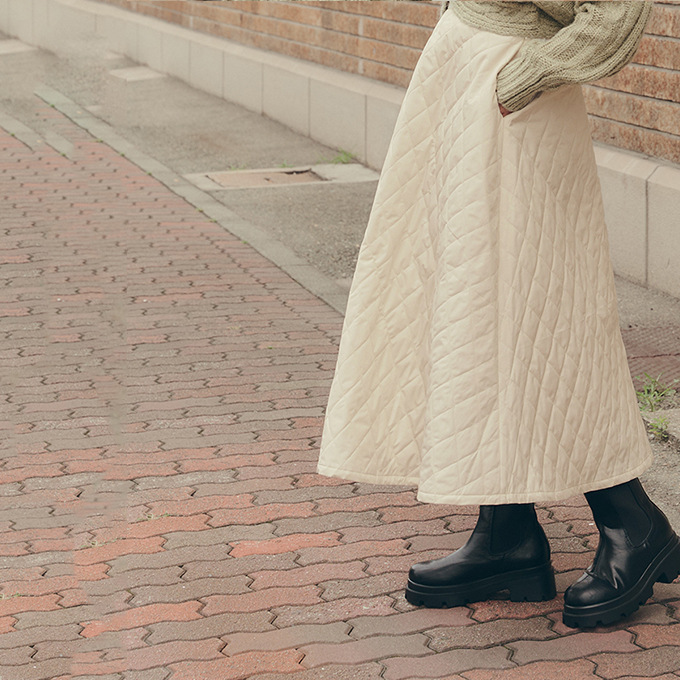 特徴:超ロング丈の裏ボアキルティング防寒スカートです。