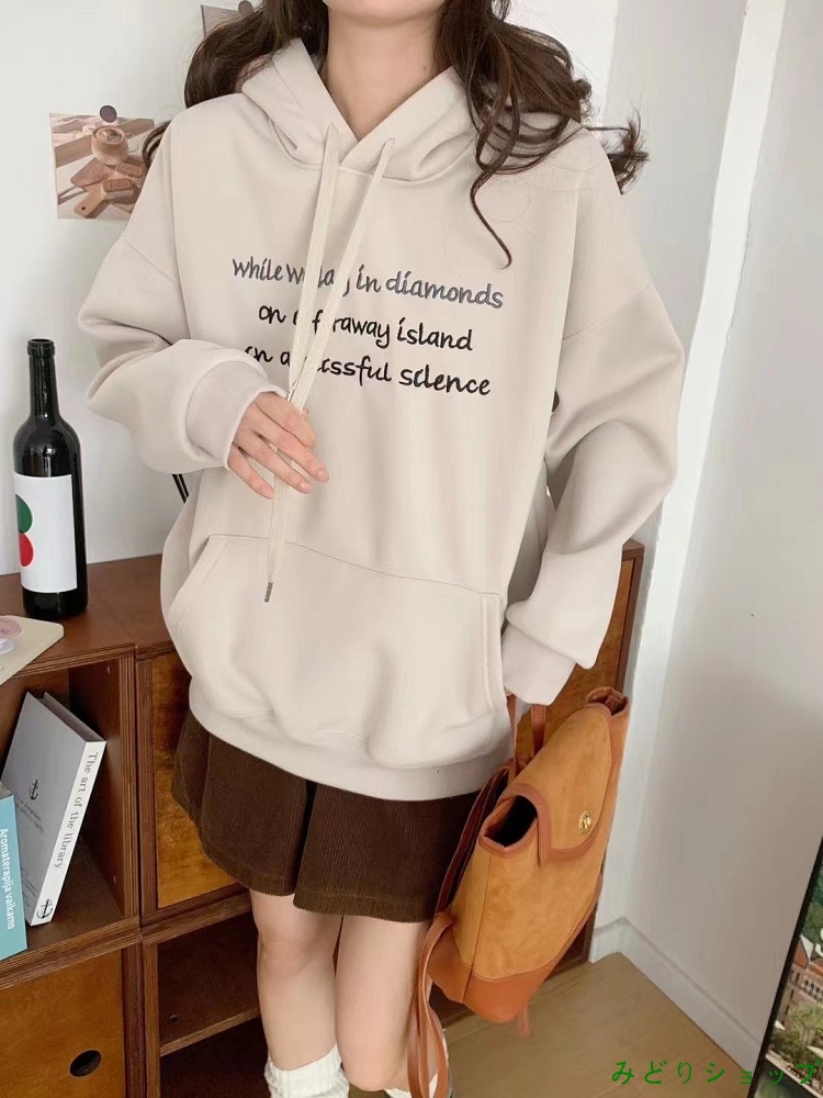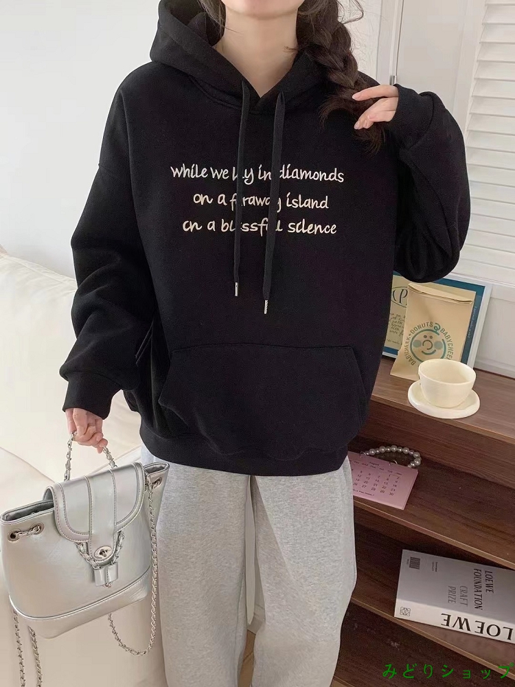 英文字 刺繍 裏起毛 裏ボア フード付き トレーナー レディース 秋冬