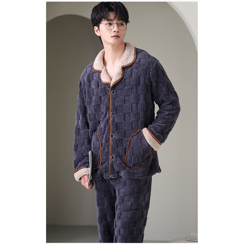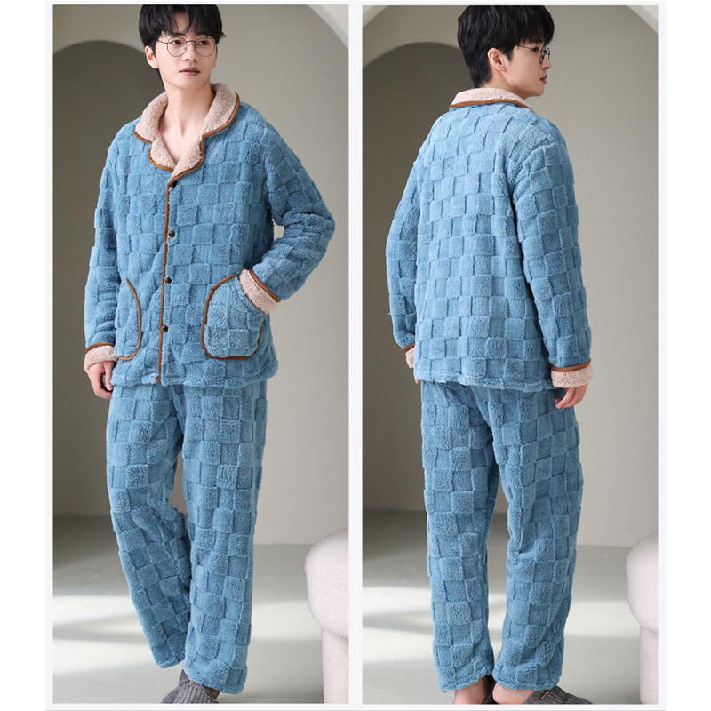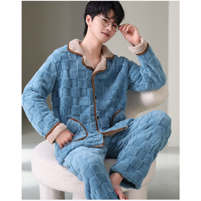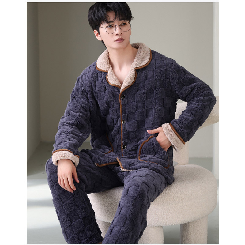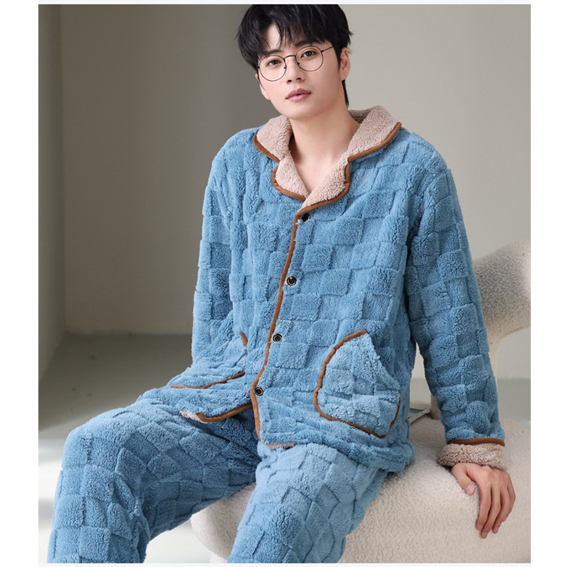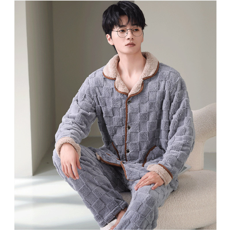 パジャマ メンズ 冬用 防寒 長袖 前開き 厚手 上下セット あったか