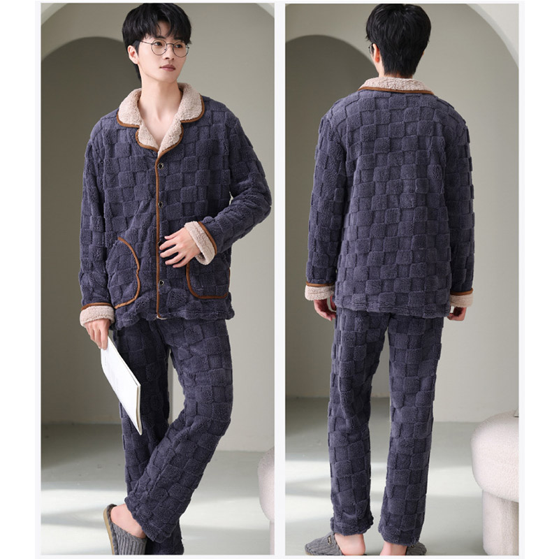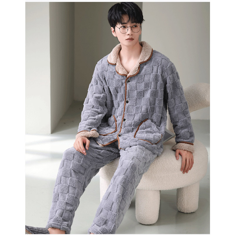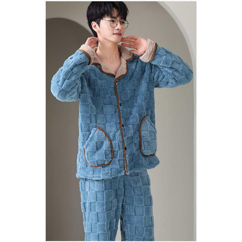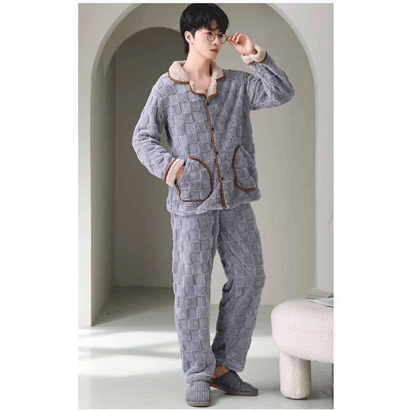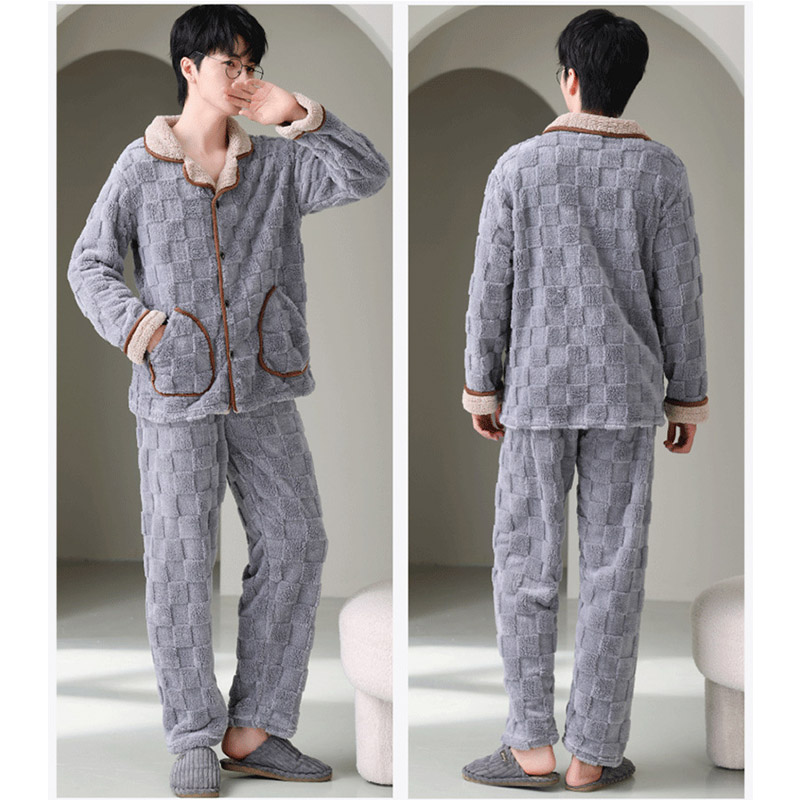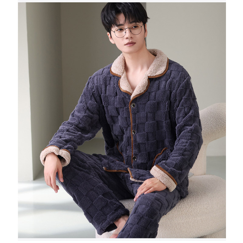 パジャマ メンズ 冬用 防寒 長袖 前開き 厚手 上下セット あったか