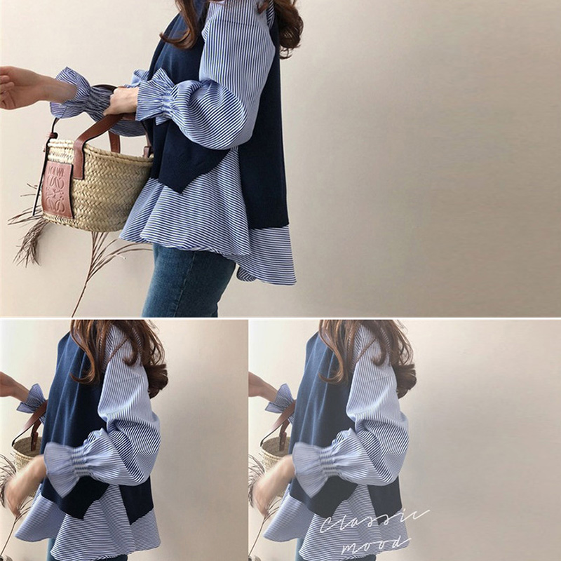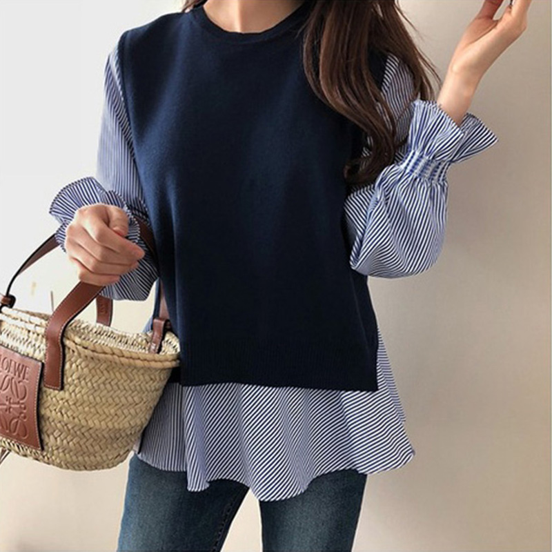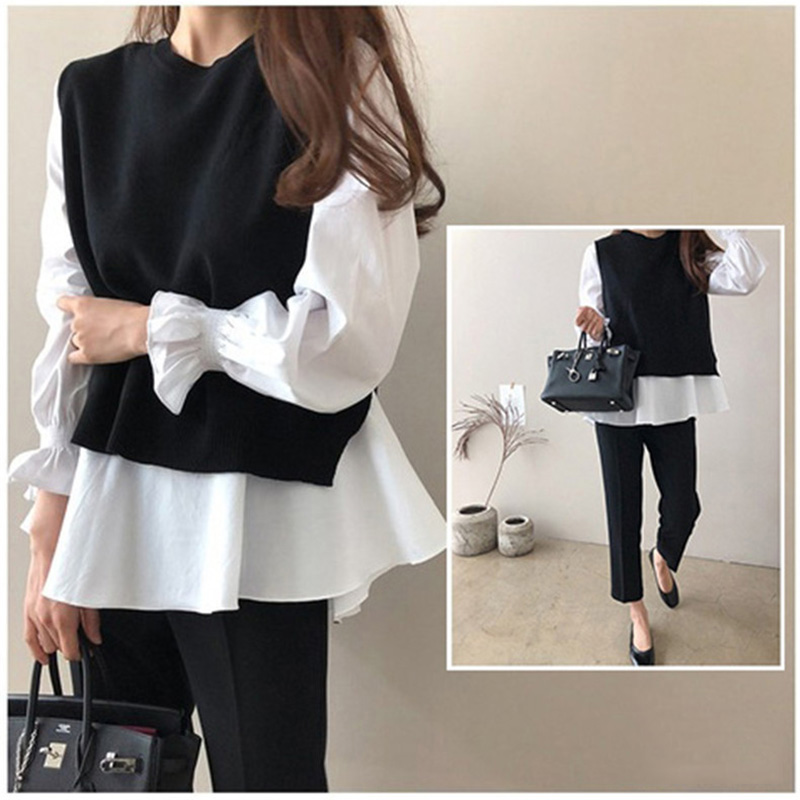 大きいサイズの女性の 2 点セット 2023 新しい韓国スタイルの秋冬長袖シャツニットベストスーツ