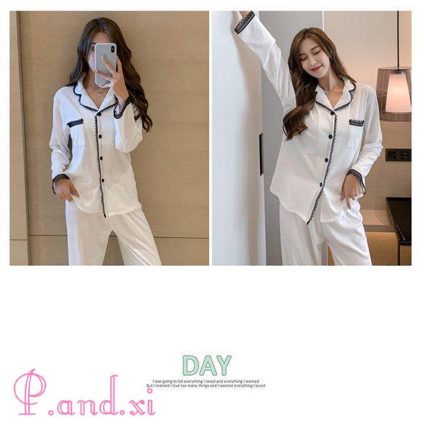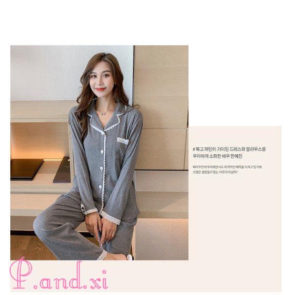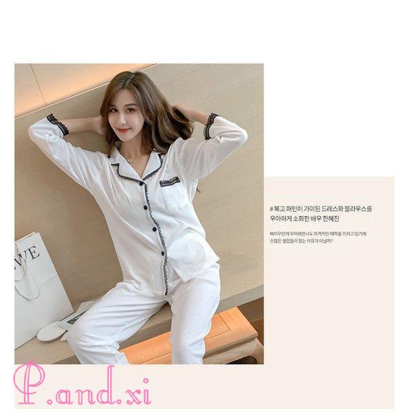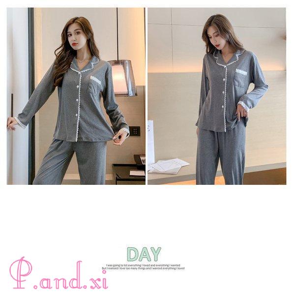 商品説明 :パジャマ レディース 春夏秋 長袖パジャマ ロングズボン 綿 ルームウェア上下セット レース シャツパジャマ 可愛い 部屋着 韓国風 寝巻き 安い