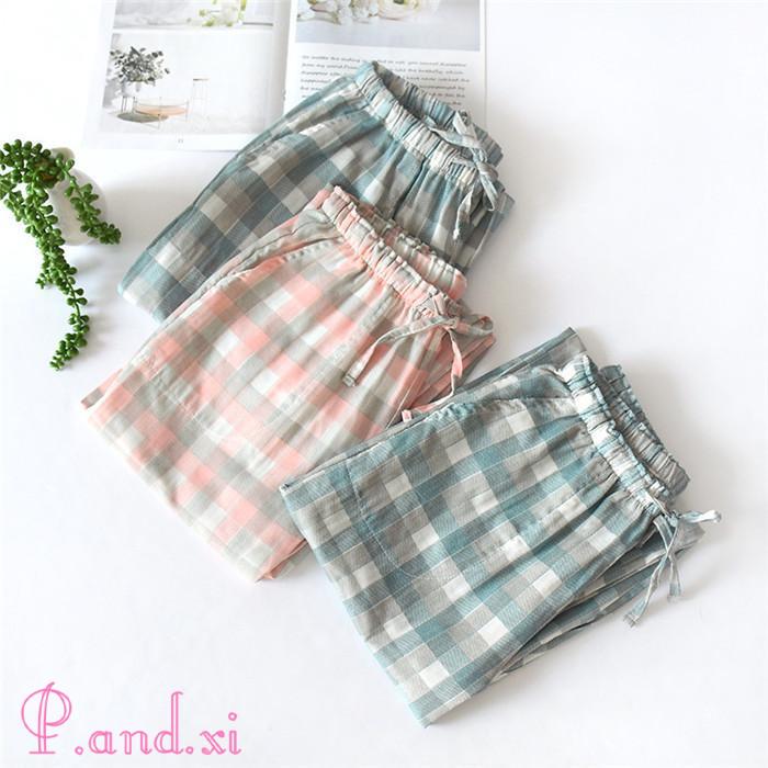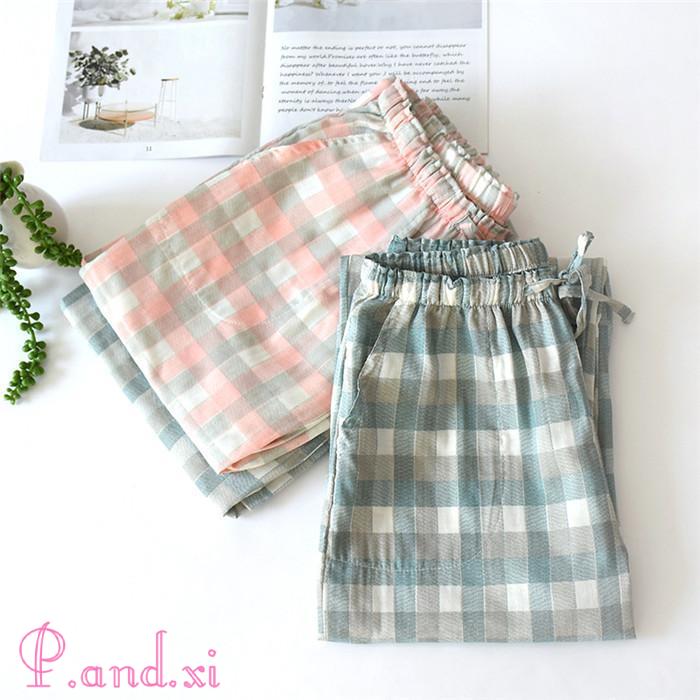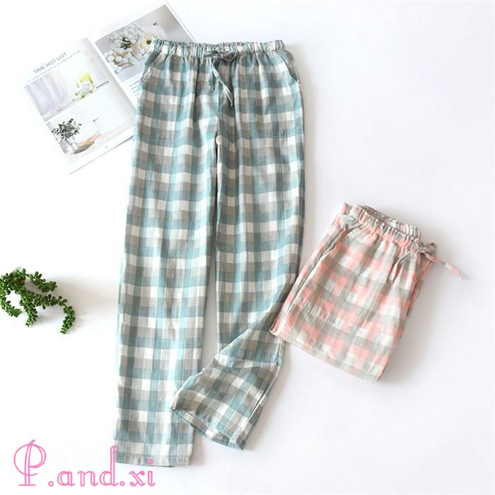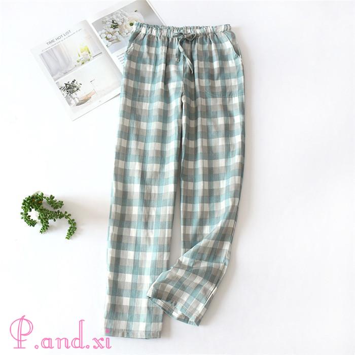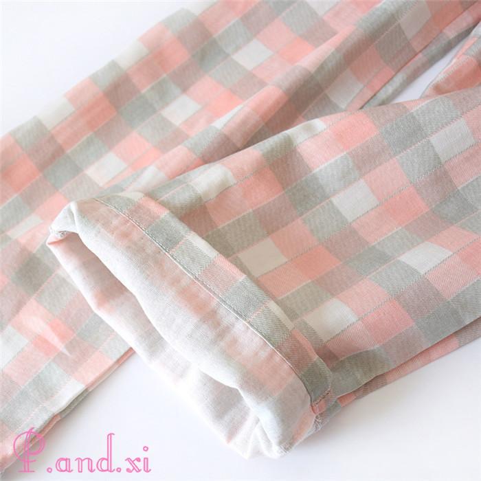 ガーゼ ルームウェア パジャマ ロングパンツ単品 レディース メンズ 部屋着 寝間着 秋 冬 寝巻き 快適 大きいサイズ 綿100% コットン 2重ガーゼ チェック柄 ベア カップル