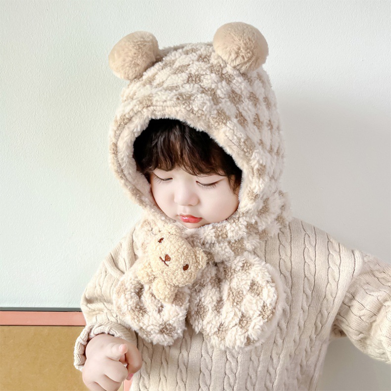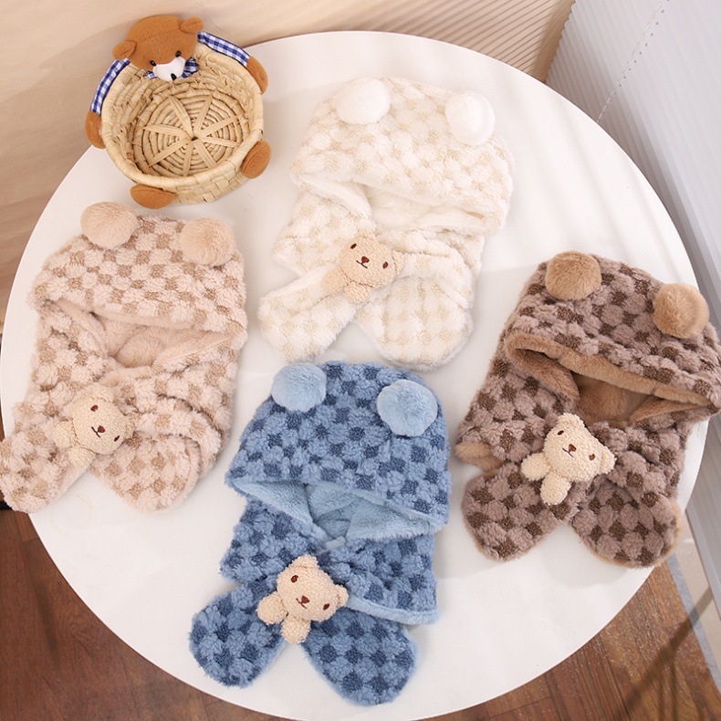 キッズフードマフラー 2IN1 マフラー フード 一体型 子ども用 かわいい 帽子 おしゃれ 寒さ対策 冬用品 ファッション ふわふわ 柔らかい 防寒 全5色