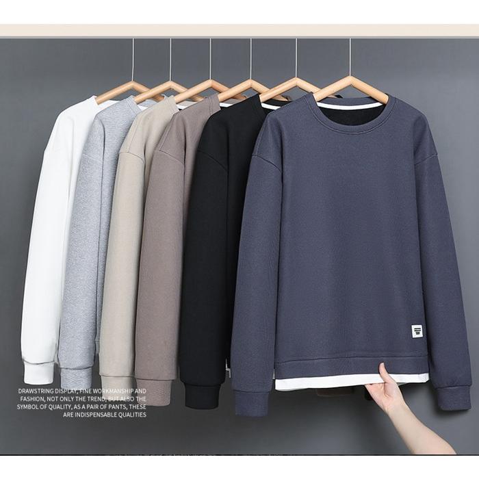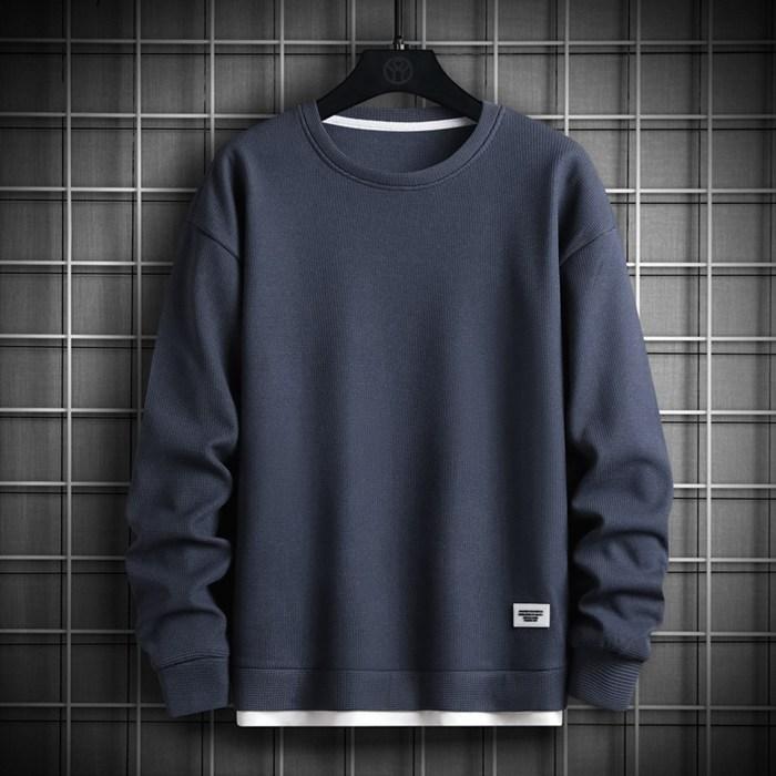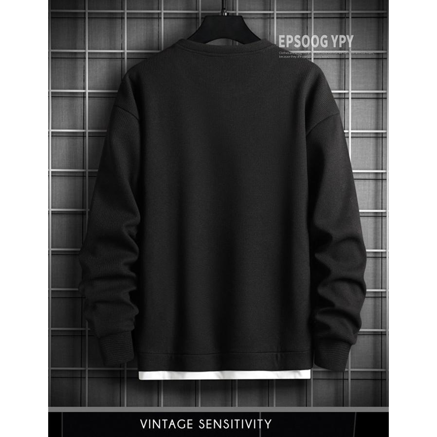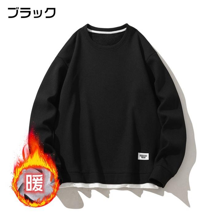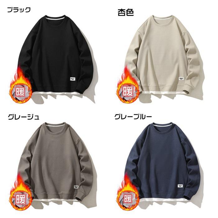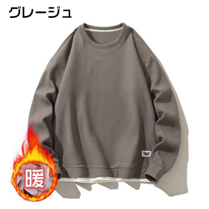トレーナー スウェット メンズ トップス 裏起毛 ワッフル 防寒 暖かい 重ね着風 ワッフル編み クルーネック 長袖 無地 おしゃれ ゆったり スポーツ 着回し 韓国ファッション 冬