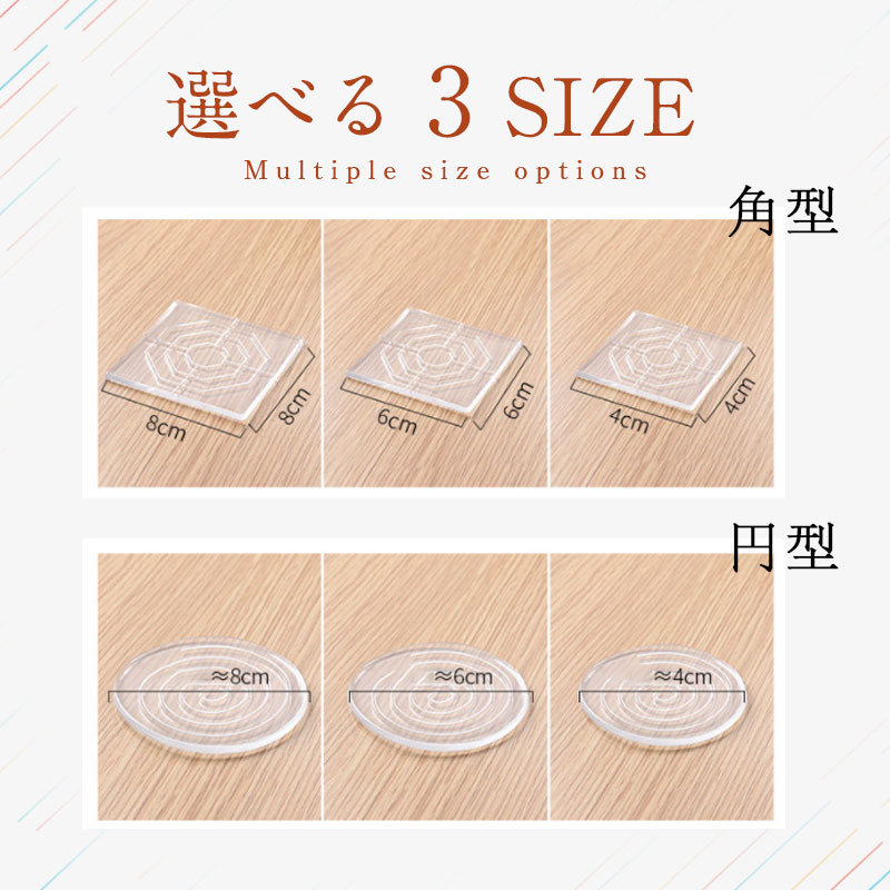サイズ 円型8枚(直径4CM) 円型8枚(直径6CM) 円型8枚(直径8CM) 角型8枚(4*4CM) 角型8枚(6*6CM) 角型8枚(8*8CM)