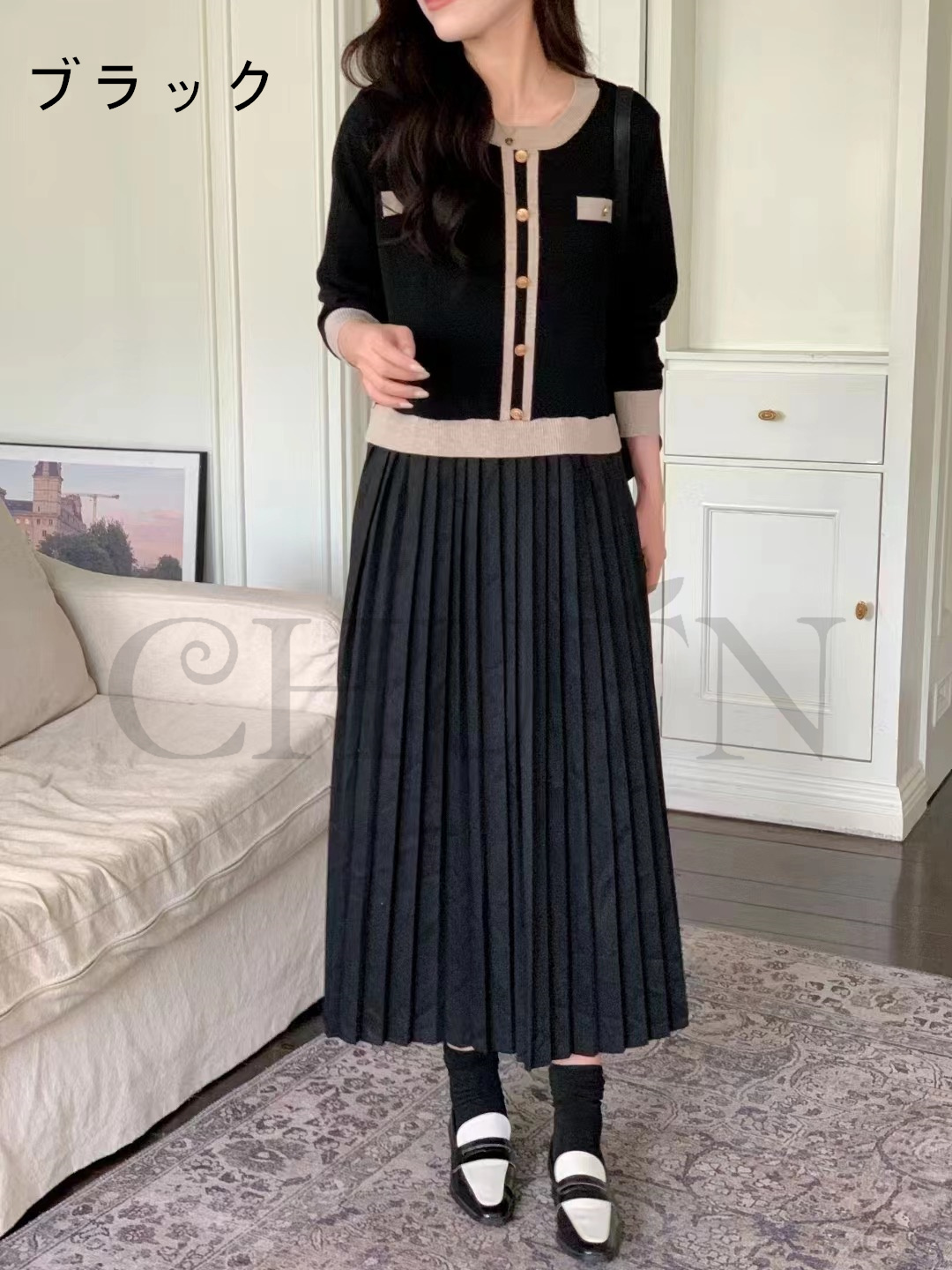 モデル着用画像では若干色味が異なる場合がございますので、下記のカラー画像をご参考になさって下さい。