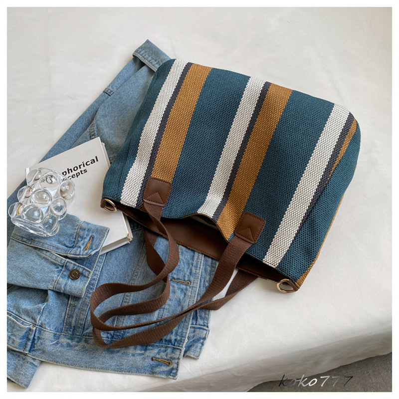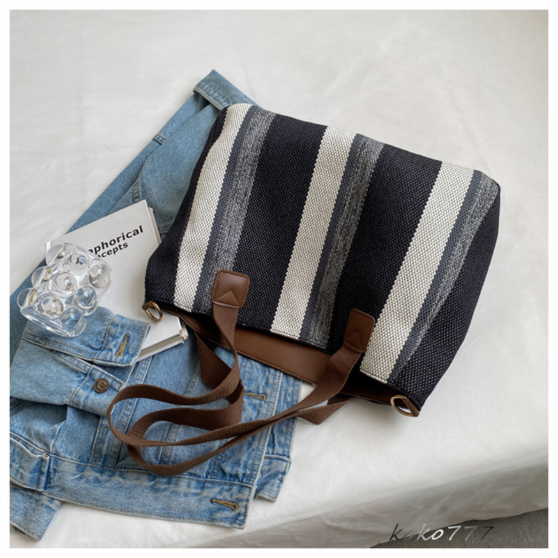 バッグ レディースかばん トートバッグ ショルダーバッグ ハンドバッグ ストライプ 女子 お出掛け カジュアル 布鞄 通勤オシャレ ワーク 通学 カバン